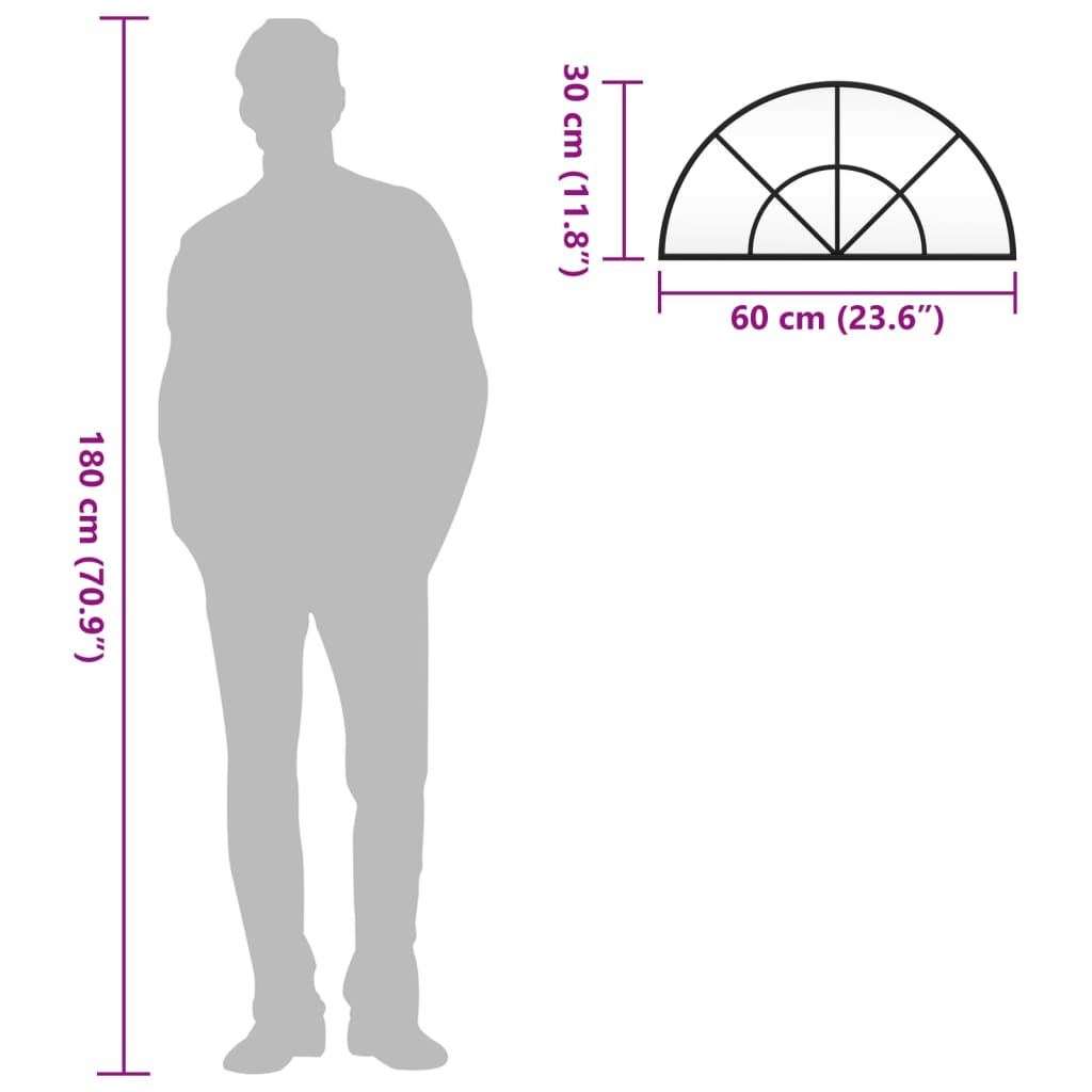 vidaXL Καθρέφτης Τοίχου Αψίδα Μαύρος 60x30 εκ. από Σίδερο