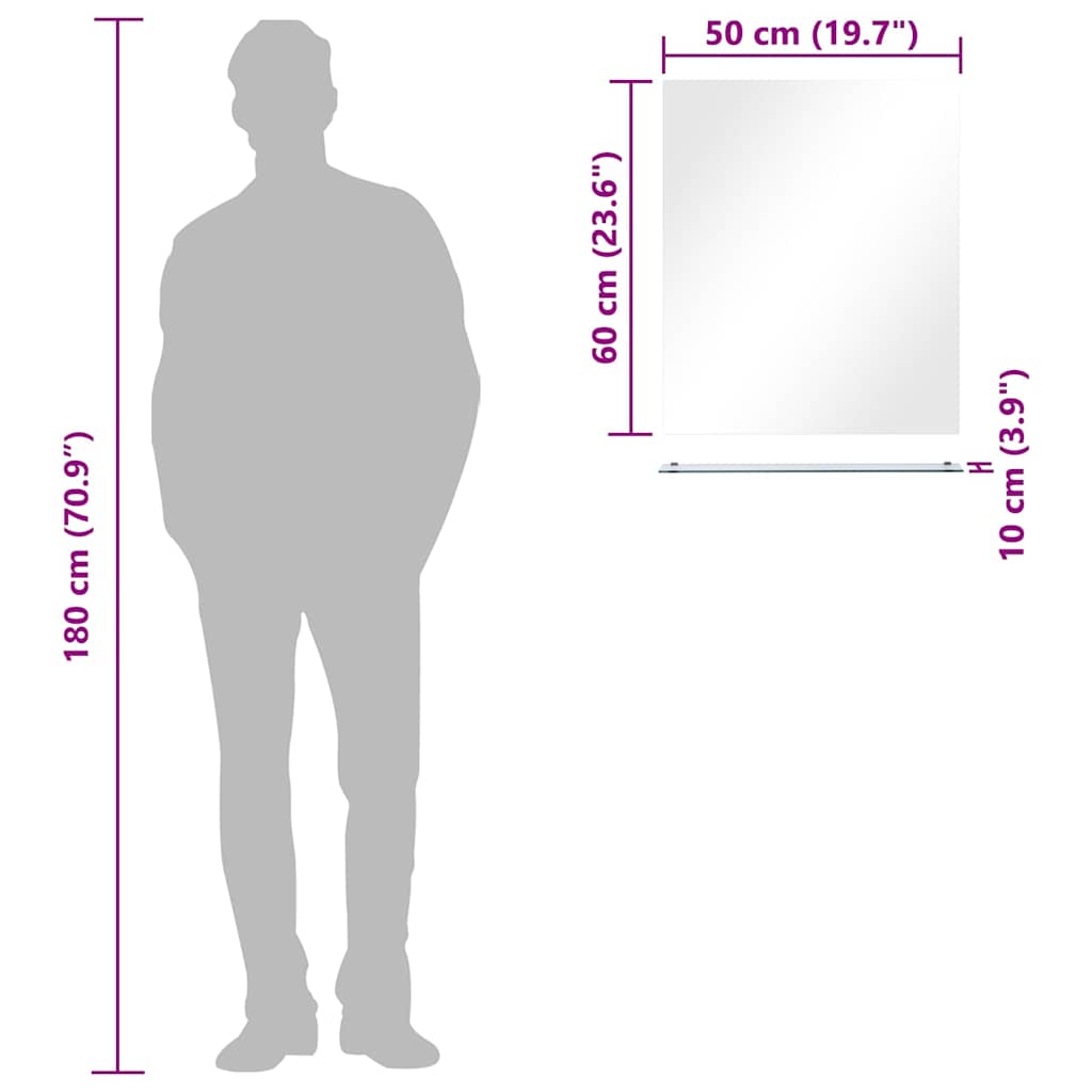 vidaXL Καθρέφτης Τοίχου με Ράφι 50 x 60 εκ. από Ψημένο Γυαλί