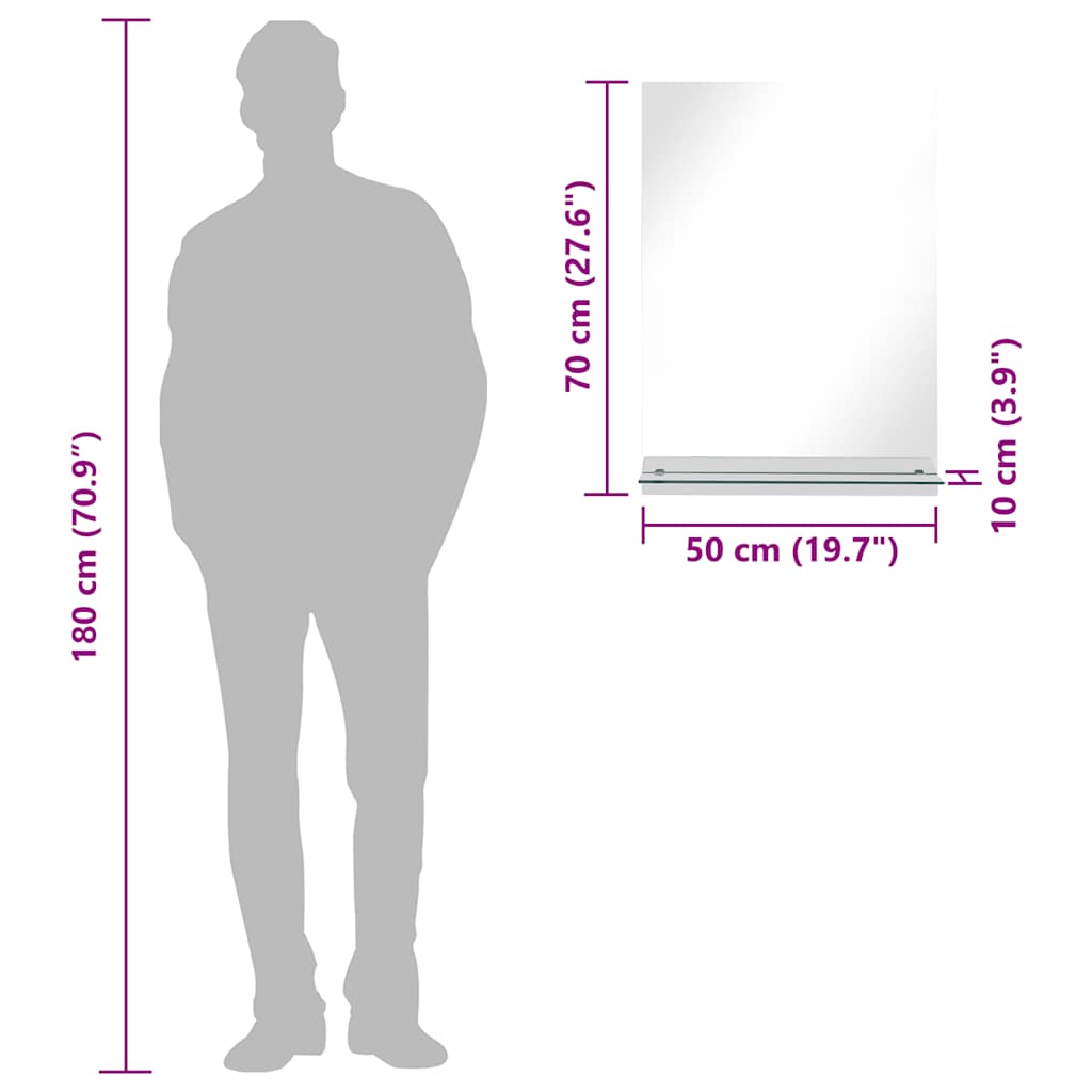 vidaXL Καθρέφτης Τοίχου με Ράφι 50 x 70 εκ. από Ψημένο Γυαλί