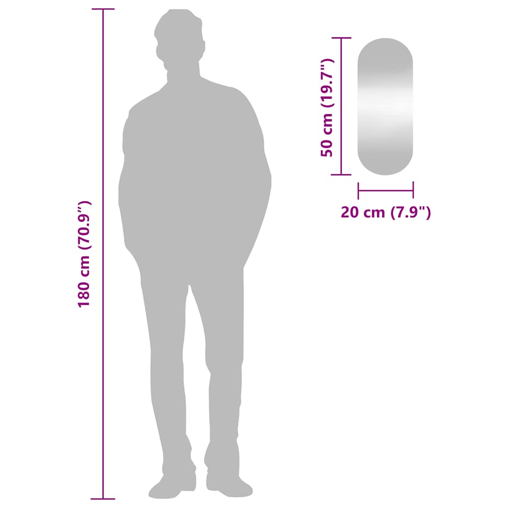 vidaXL Καθρέφτης Τοίχου Οβάλ 20 x 50 εκ. Γυάλινος