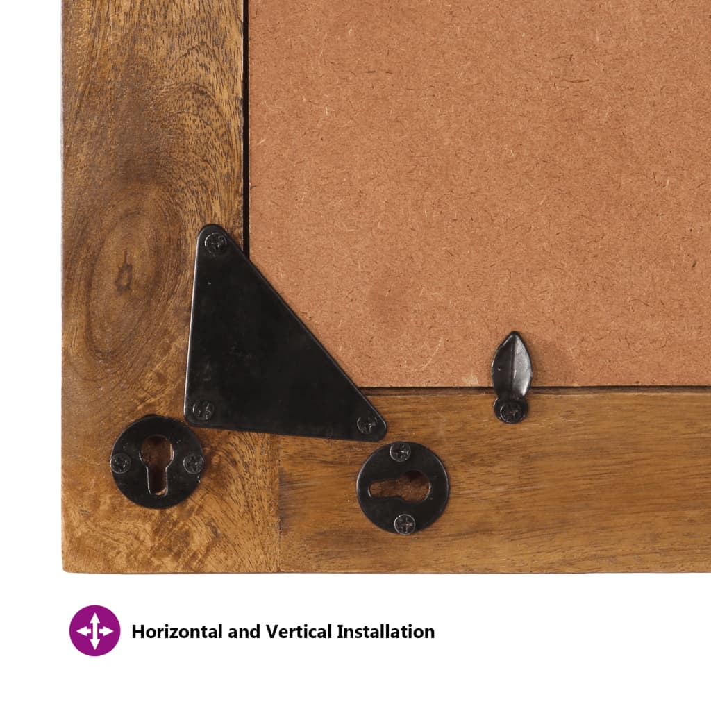 - Μασίφ ξύλο μάνγκο: Το μασίφ ξύλο μάνγκο είναι ένα ισχυρό, τροπικό σκληρό ξύλο που καθιστά τα έπιπλα στιβαρά. Τα όμορφα νερά του ξύλου κάνουν κάθε έπιπλο ελαφρώς διαφορετικό από το επόμενο. Το πλαίσιο από μασίφ ξύλο μάνγκο προσδίδει στον καθρέφτη μια ρουστίκ γοητεία ενώ παράλληλα εξασφαλίζει ανθεκτικότητα.
