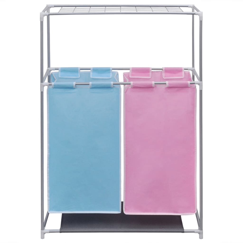 vidaXL Καλάθια Διαχωρισμού Απλύτων με 2 Τμήματα 2 τεμ. + Ράφι Στεγνώμ.