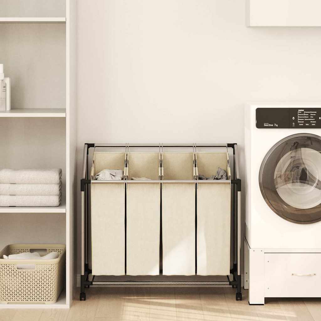 vidaXL Καλάθι Διαχωρισμού Απλύτων με 4 Σάκους Κρεμ από Ατσάλι