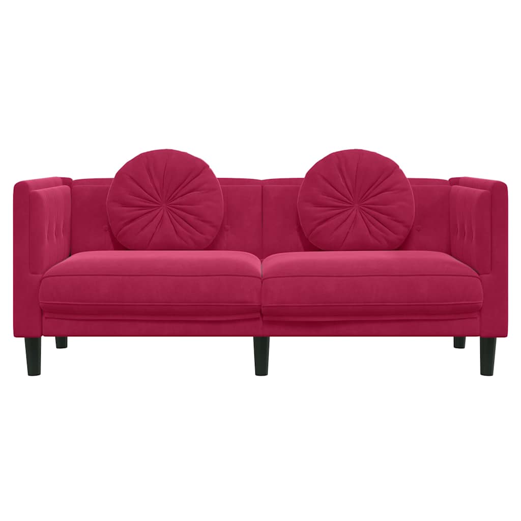 vidaXL Καναπές Διθέσιος Μπορντό από Βελούδο με Μαξιλάρια