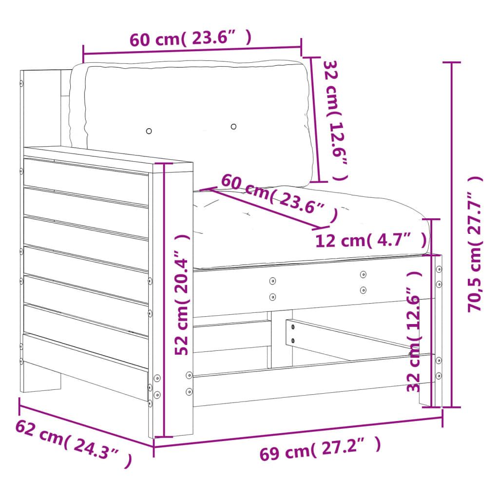 vidaXL Καναπές Κήπου με Μπράτσα Λευκό Μασίφ Ξύλο Πεύκου με Μαξιλάρι