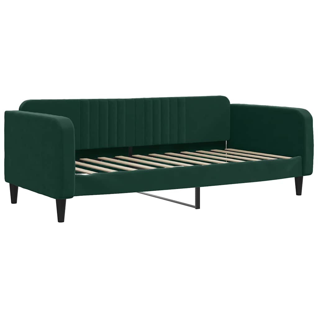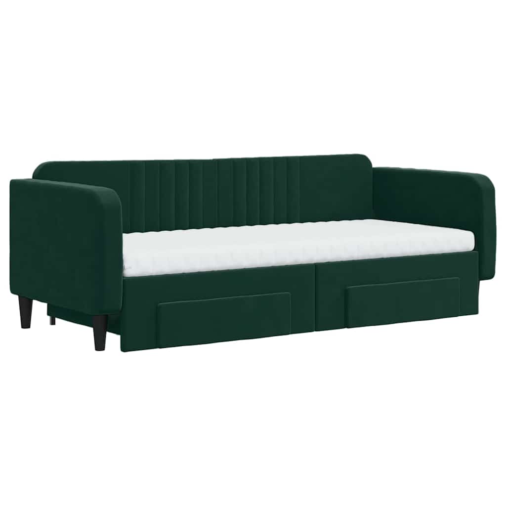 vidaXL Καναπές Κρεβάτι Συρόμενος Σκ. Πράσινο 90x200εκ Βελούδο Συρτάρια