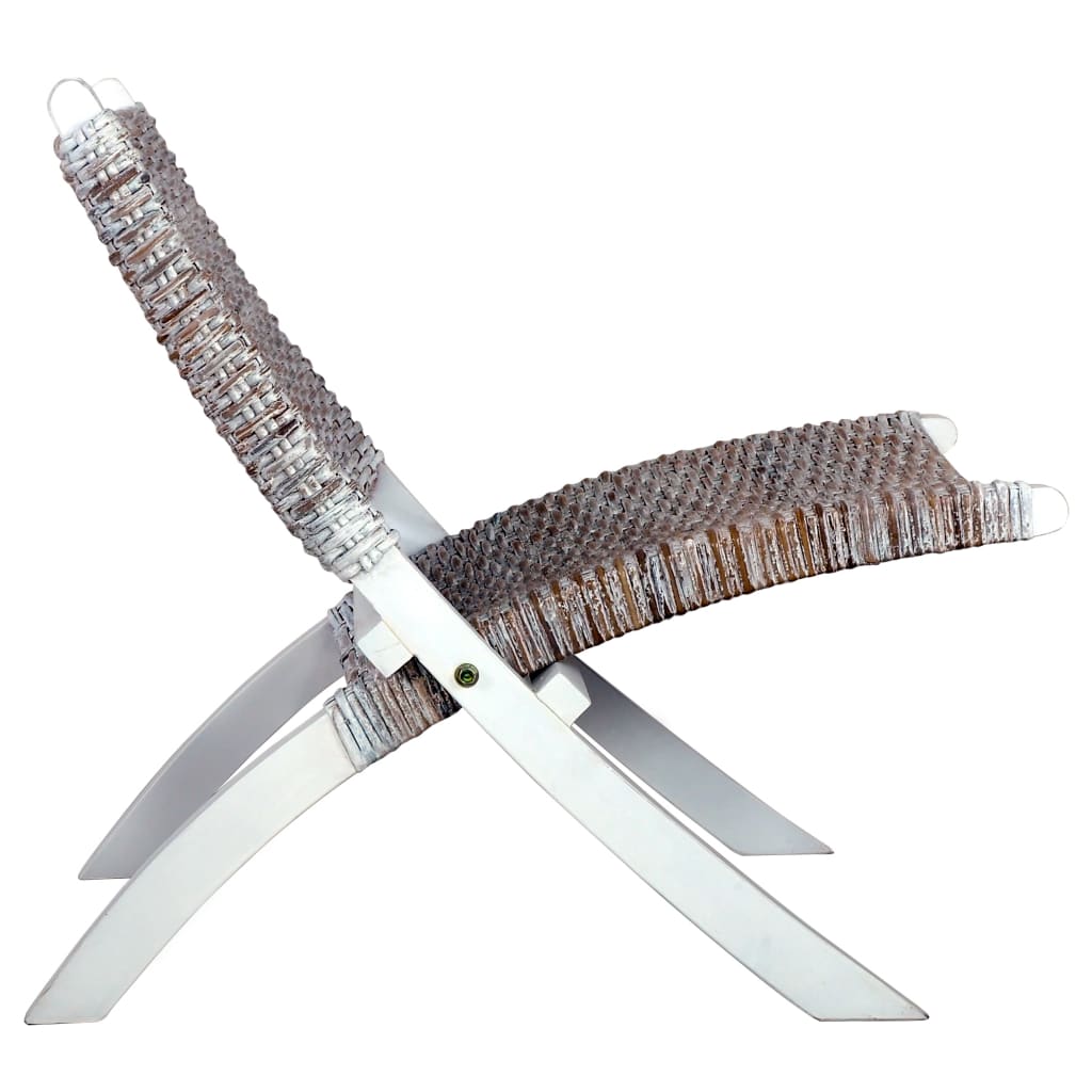 vidaXL Καρέκλα Λευκή Φυσικό Ρατάν Kubu και Μασίφ Μαόνι