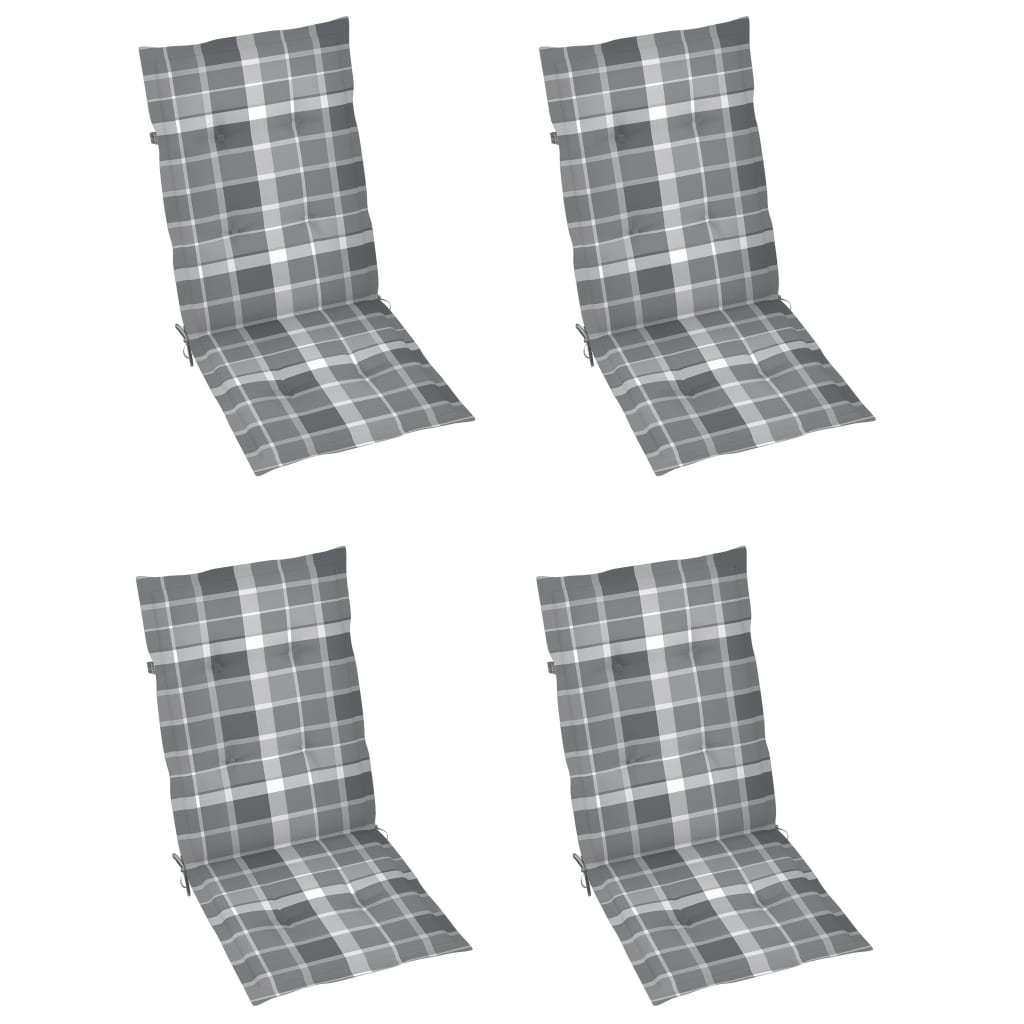 vidaXL Καρέκλες Κήπου 4 τεμ. Μασίφ Ξύλο Teak με Γκρι Καρό Μαξιλάρια
