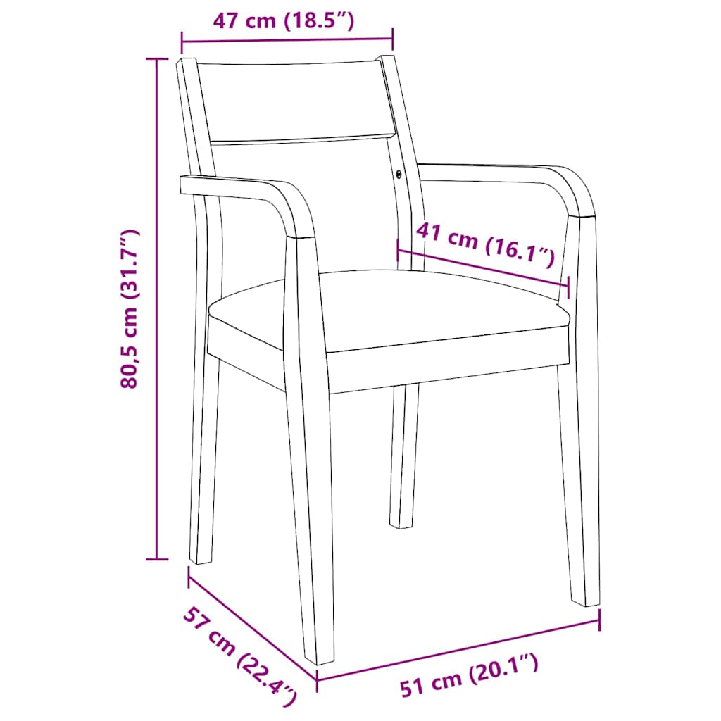 vidaXL Καρέκλες τραπεζαρίας με μαξιλάρια 2 τεμ Φυσικό μασίφ ξύλο