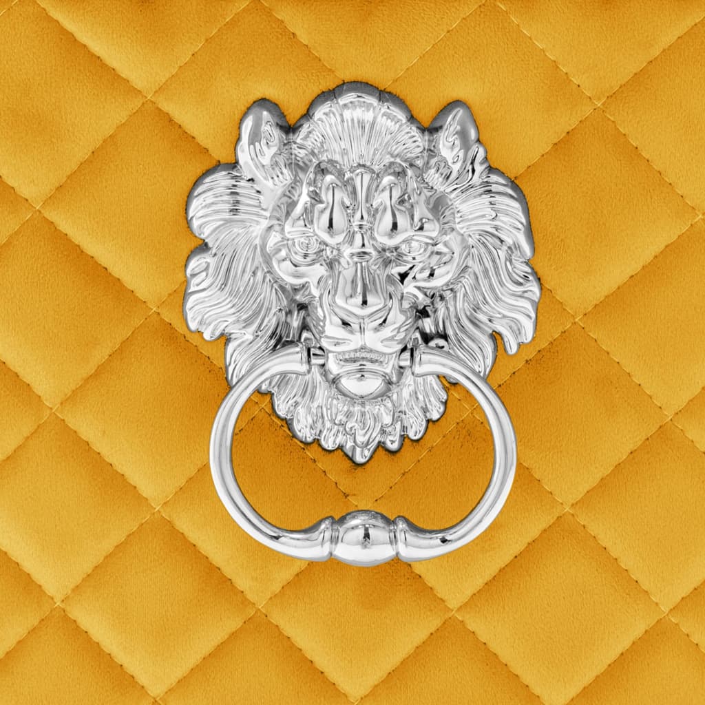 Αυτές οι καρέκλες κουζίνας διαθέτουν ταπετσαρία από μαλακό βελούδο και πλούσια επένδυση, που τις καθιστά άνετες. Ο ξύλινος σκελετός και τα πόδια από ανοξείδωτο ατσάλι παρέχουν υψηλή στιβαρότητα και σταθερότητα. Επιπλέον, το κρεμαστό διακοσμητικό λιοντάρι και τα κουμπιά αποτελούν μία κομψή λεπτομέρεια στο σχέδιο των καρεκλών.