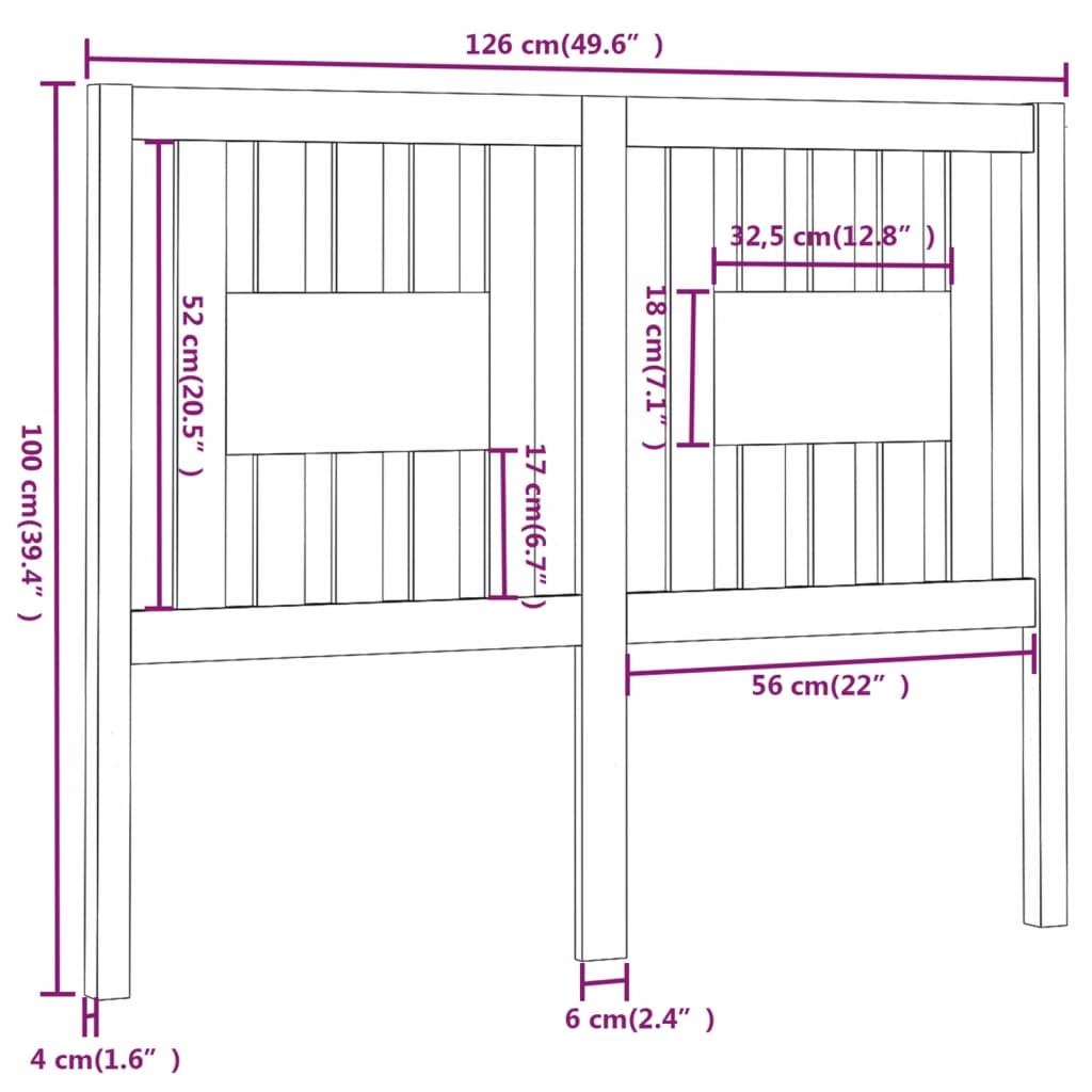 vidaXL Κεφαλάρι Κρεβατιού Μαύρο 126 x 4 x 100 εκ. Μασίφ Ξύλο Πεύκου