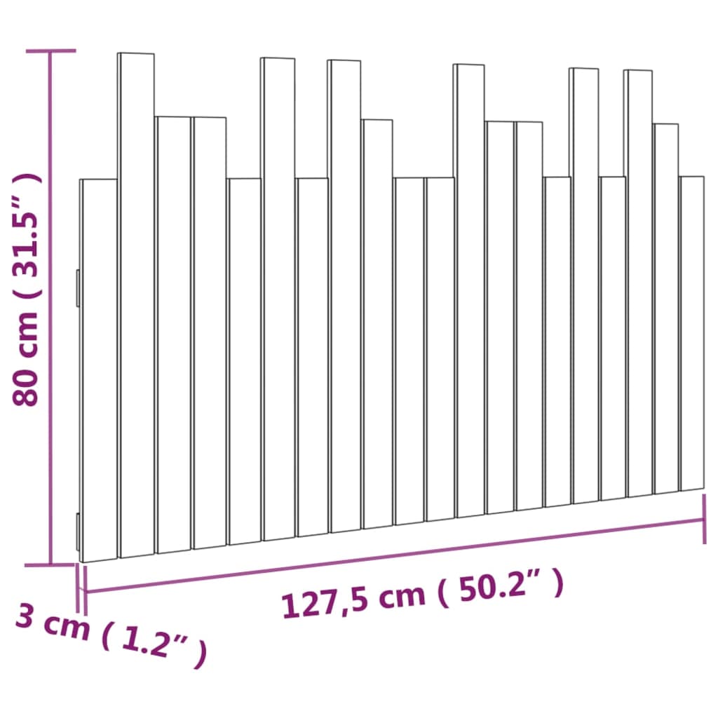 vidaXL Κεφαλάρι Τοίχου Μαύρο 127,5x3x80 εκ. από Μασίφ Ξύλο Πεύκου