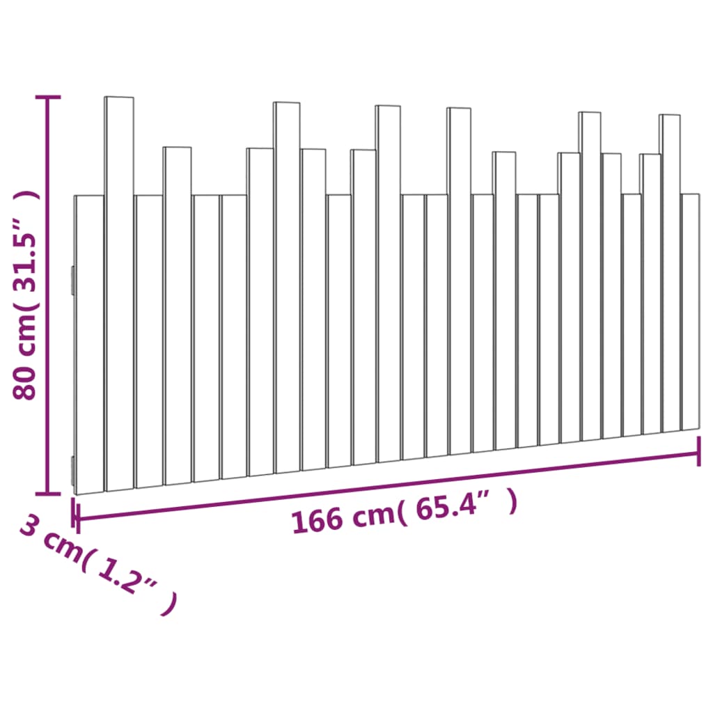 vidaXL Κεφαλάρι Τοίχου Μαύρο 166 x 3 x 80 εκ. από Μασίφ Ξύλο Πεύκου