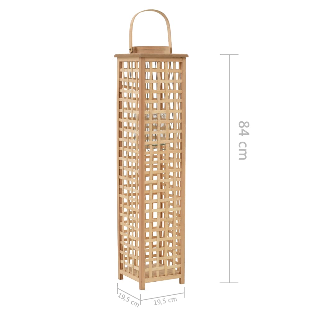 Με κατασκευή από μπαμπού που είναι εκ φύσεως ισχυρό, το κρεμαστό φανάρι είναι κατάλληλο για χρήση σε εξωτερικούς χώρους. Το εσωτερικό γυάλινο δοχείο αποτελεί μία ασφαλή και σταθερή θήκη για το κερί. Κρεμιέται εύκολα με την περιλαμβανόμενη λαβή από μπαμπού, ενώ μπορεί να χρησιμοποιηθεί και ως επιδαπέδιο.