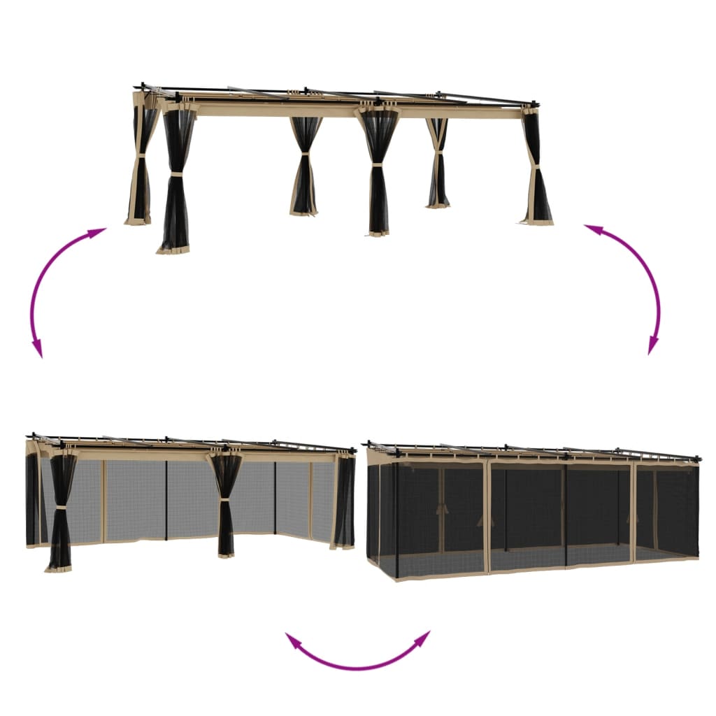 vidaXL Κιόσκι με Τοίχους από Δίχτυ Taupe 6x3 μ. από Ατσάλι