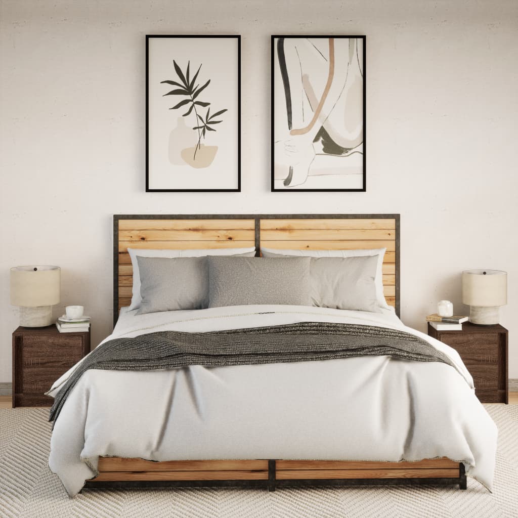 vidaXL Κομοδίνα με Φώτα LED 2 τεμ. Καφέ Δρυς από Επεξεργασμένο Ξύλο