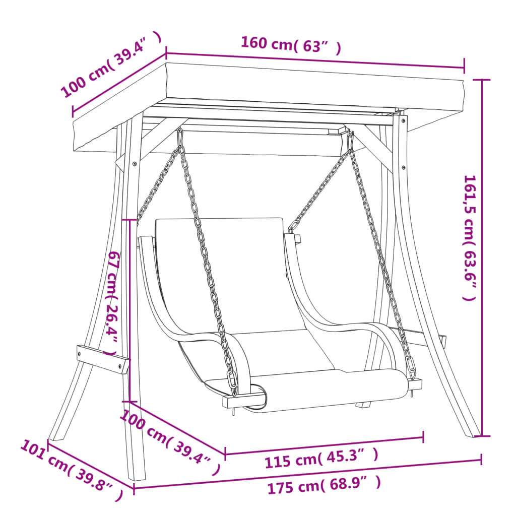 vidaXL Κουνιστή Καρέκλα με Μαξιλάρι και Σκίαστρο από Μασίφ Ερυθρελάτη