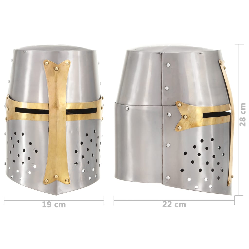 vidaXL Κράνος Σταυροφόρου Ιππότη Ρέπλικα Αντικέ LARP Ασημί Ατσάλινο