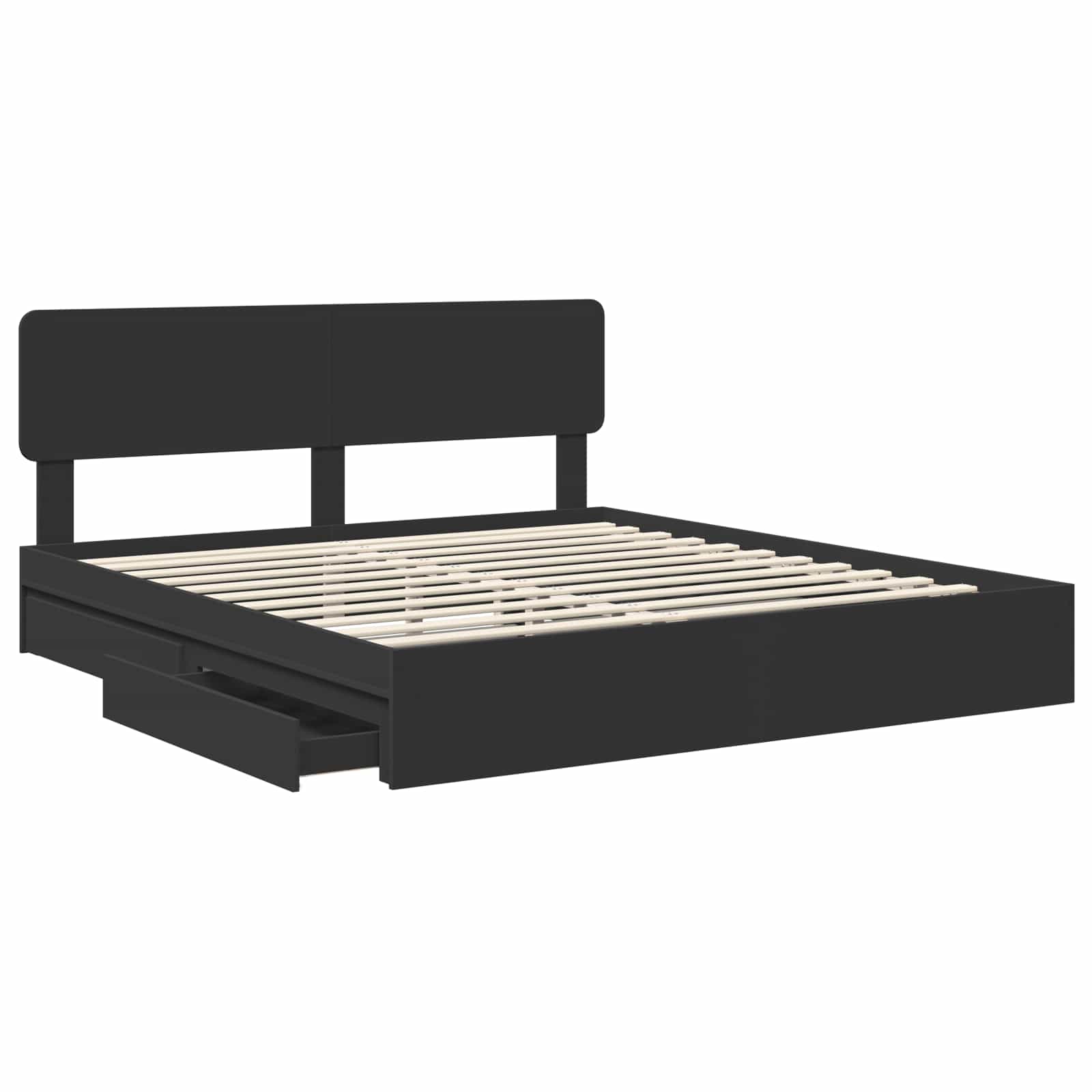 vidaXL Κρεβάτι Αποθήκης Μαύρο 200 x 200 cm Επεξεργασμένο ξύλο