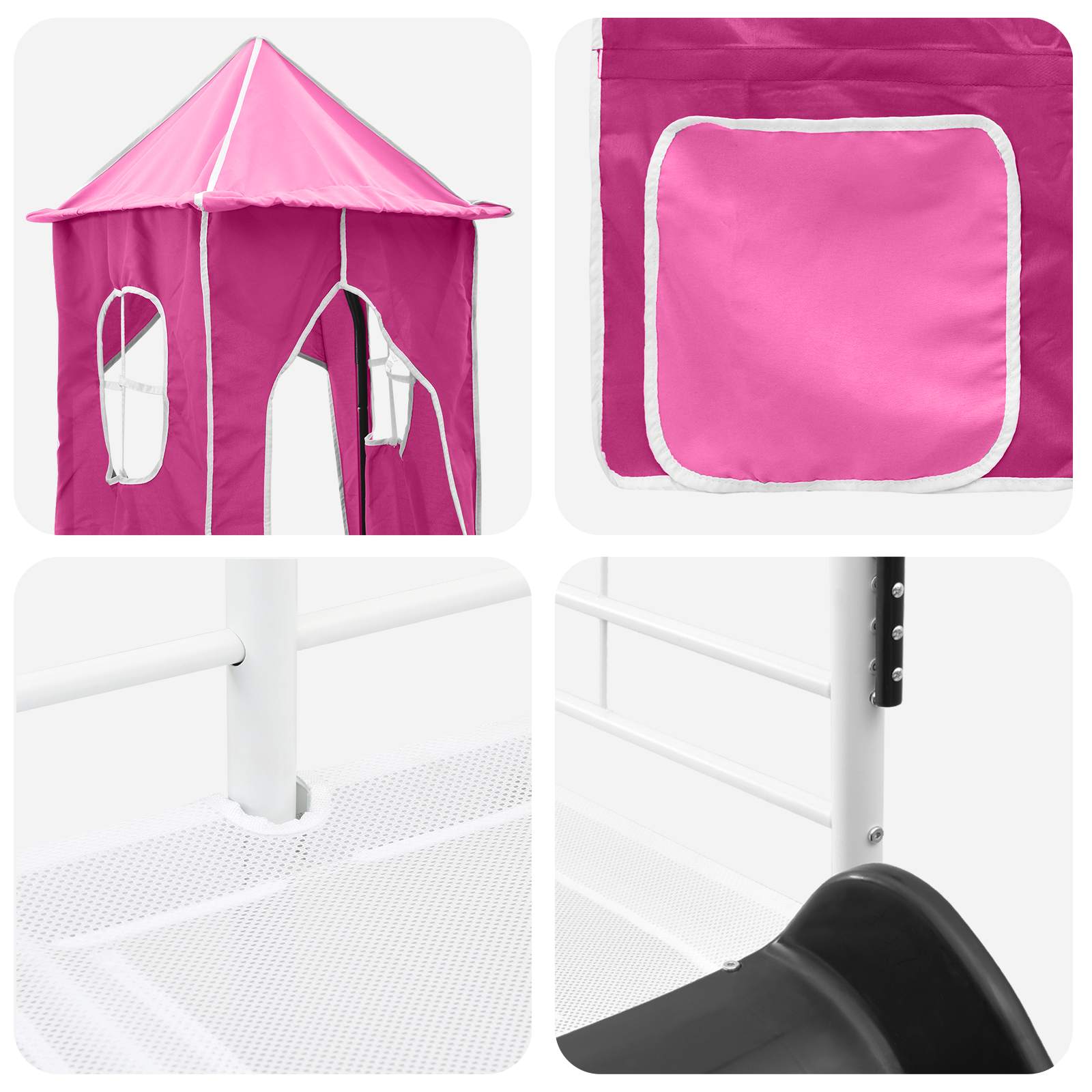 Αυτό το σύγχρονο κρεβάτι loft για παιδιά είναι ο ιδανικός χώρος για ξεκούραση και παιχνίδι. Έχει σχεδιαστεί με ανεπτυγμένα χαρακτηριστικά όπως κουρτίνες, αψίδες και τσουλήθρα για άπειρες ώρες διασκέδασης. Με μοντέρνα εμφάνιση, αυτό το loft μετατρέπει τον απλό χώρο σε πρακτικό και ευχάριστο. Είναι η λύση για να διατηρείτε το δωμάτιο οργανωμένο και παιχνιδιάρικο. Το ανθεκτικό μαύρο ματ πλαίσιο και οι όμορφες κουρτίνες προσφέρουν ζωντάνια και προστασία.