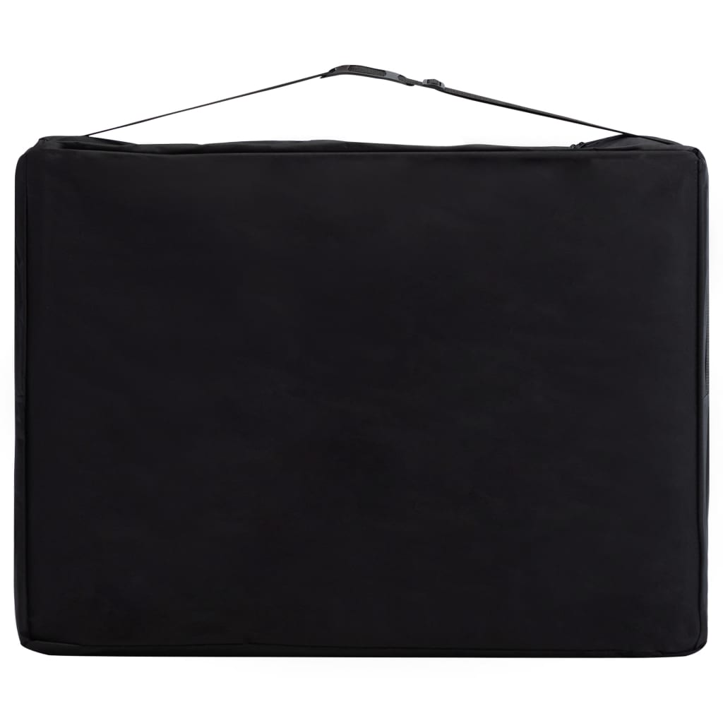 Το μαξιλάρι, επενδυμένο με παχύ αφρό, είναι ιδιαίτερα άνετο και ανθεκτικό σε κατάλληλη συγκέντρωση απολυμαντικών και λαδιού μασάζ. Το προσκέφαλο και τα στηρίγματα τω μπράτσων είναι ρυθμιζόμενα, όπως και το ύψος του τραπεζιού, γεγονός που επιτρέπει στον χρήστη του να ξαπλώνει άνετα και στον θεραπευτή μασάζ να επιλέξει το επιθυμητό ύψος εργασίας. Περιλαμβάνεται τσάντα μεταφοράς για εύκολη μεταφορά και αποθήκευση.