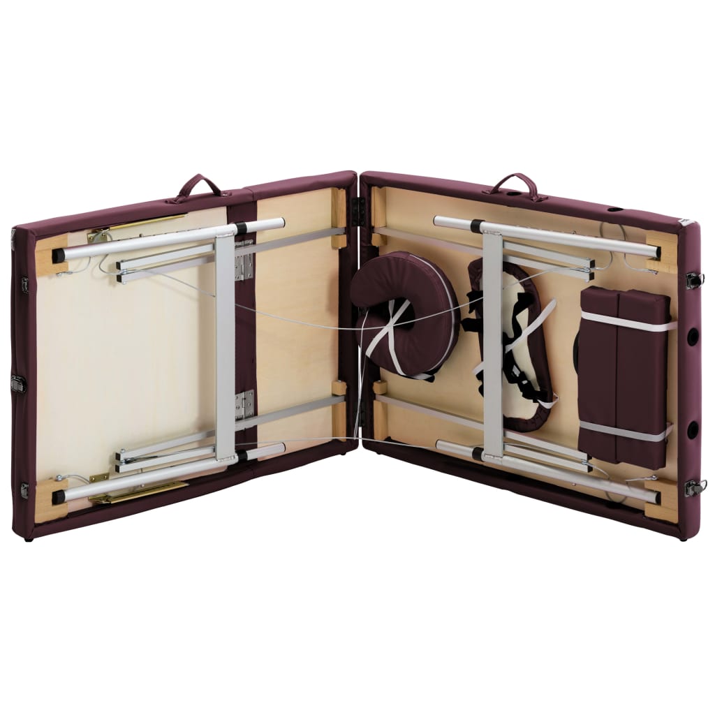 vidaXL Κρεβάτι Μασάζ Πτυσσόμενο 3 Θέσεων Βιολετί Αλουμινίου