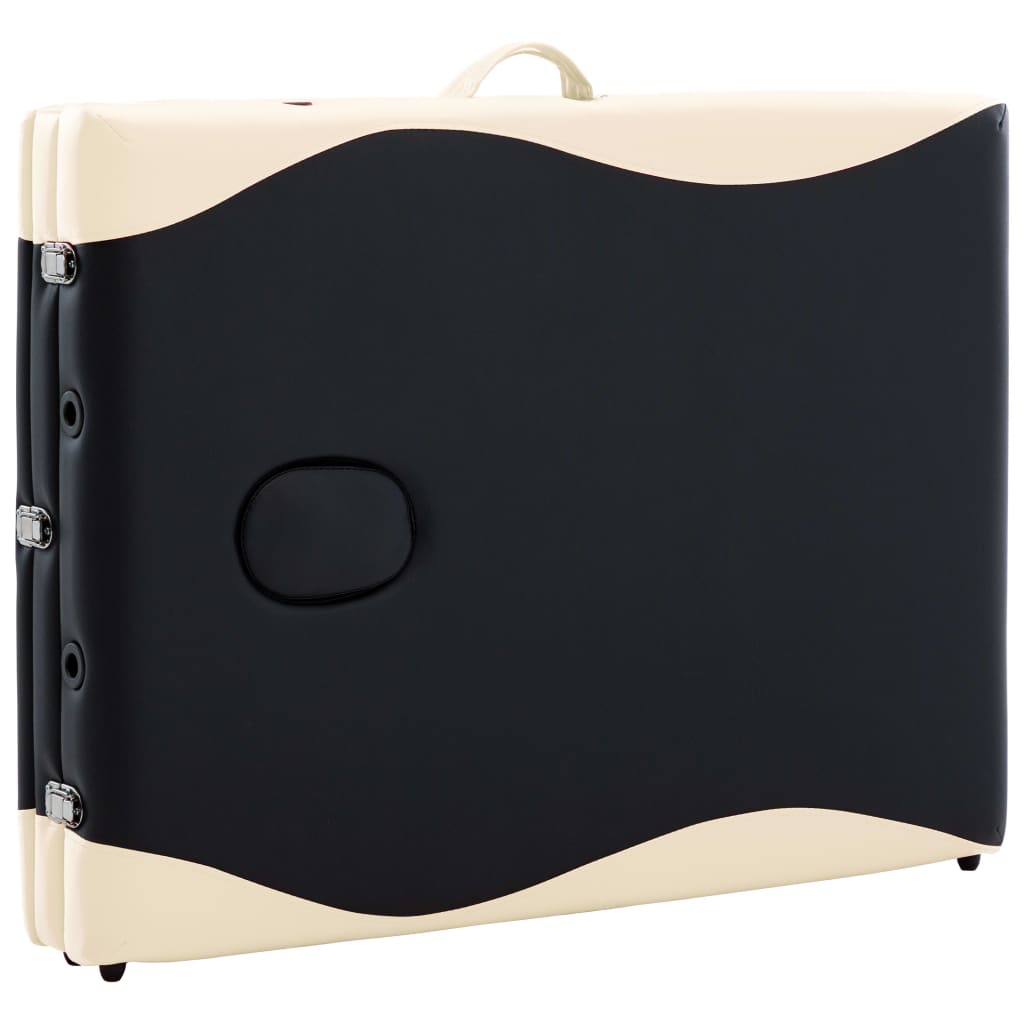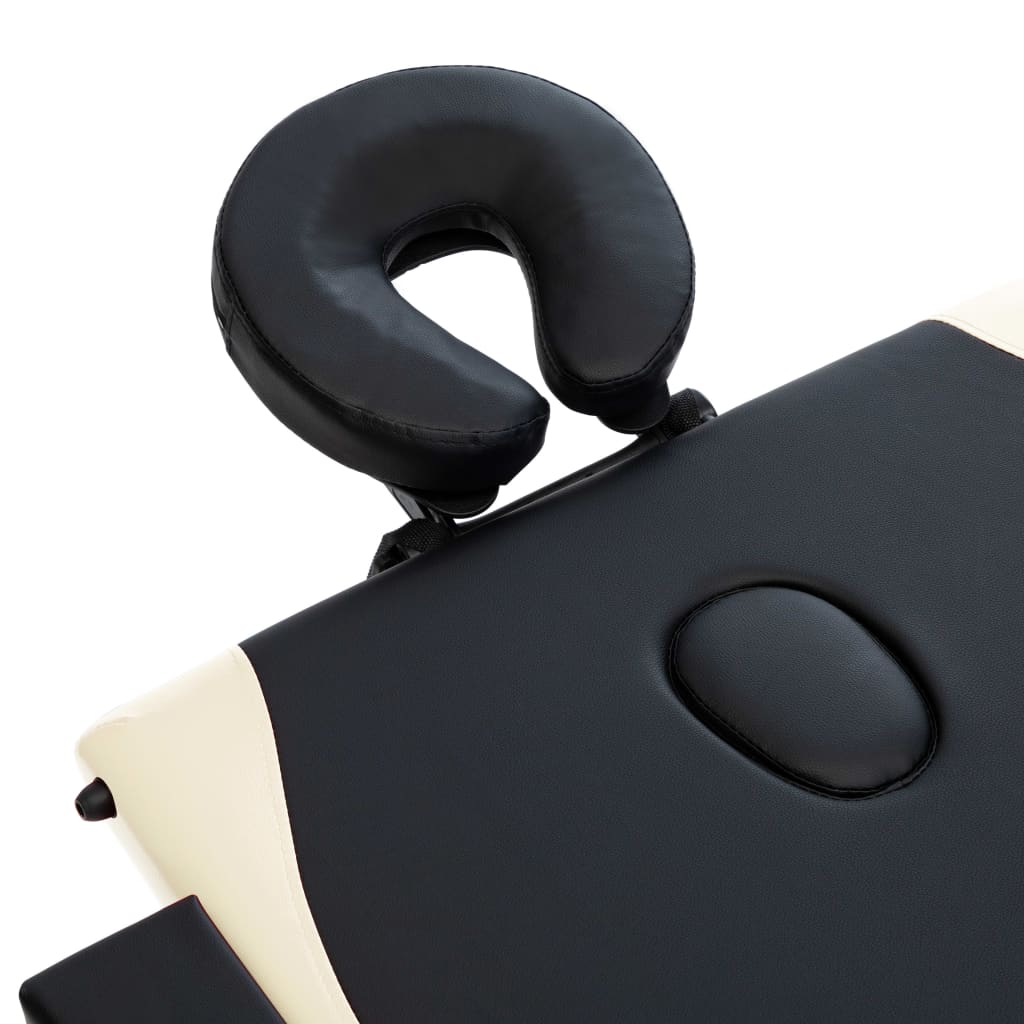 vidaXL Κρεβάτι Μασάζ Πτυσσόμενο 3 Θέσεων Μαύρο / Μπεζ Ξύλινο