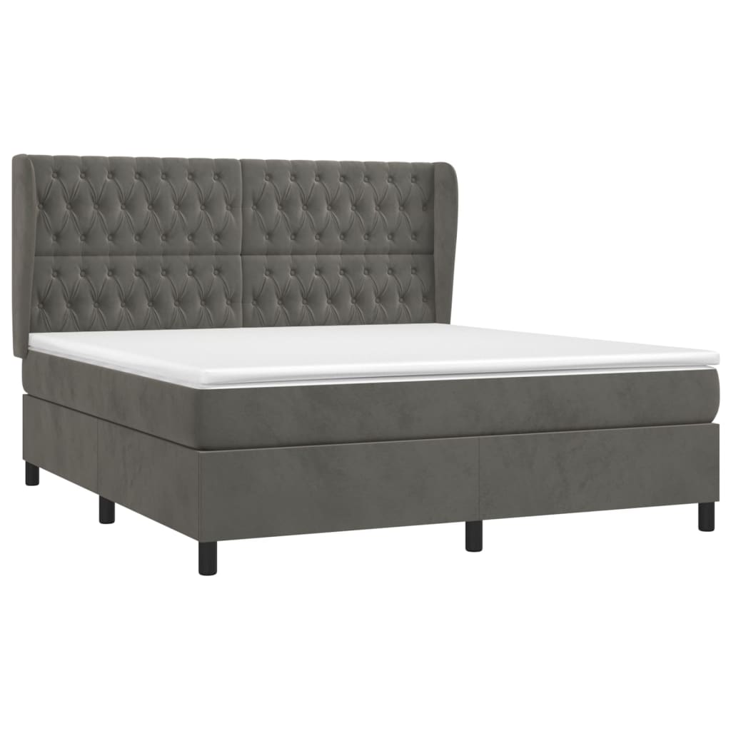 vidaXL Κρεβάτι Boxspring με Στρώμα Σκούρο Γκρι 180x200 εκ. Βελούδινο