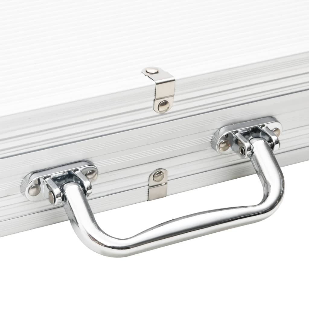 - Φορητή θήκη μεταφοράς: Το σετ πόκερ συνοδεύεται από μια κομψή θήκη μεταφοράς από αλουμίνιο που διατηρεί όλα τα εξαρτήματα σε ένα σημείο και οργανωμένα. Η θήκη είναι ελαφριά και φορητή, γεγονός που καθιστά εύκολη την αποθήκευση όταν δεν χρησιμοποιείται και είναι ιδανική για μεταφορά από το ένα μέρος στο άλλο.