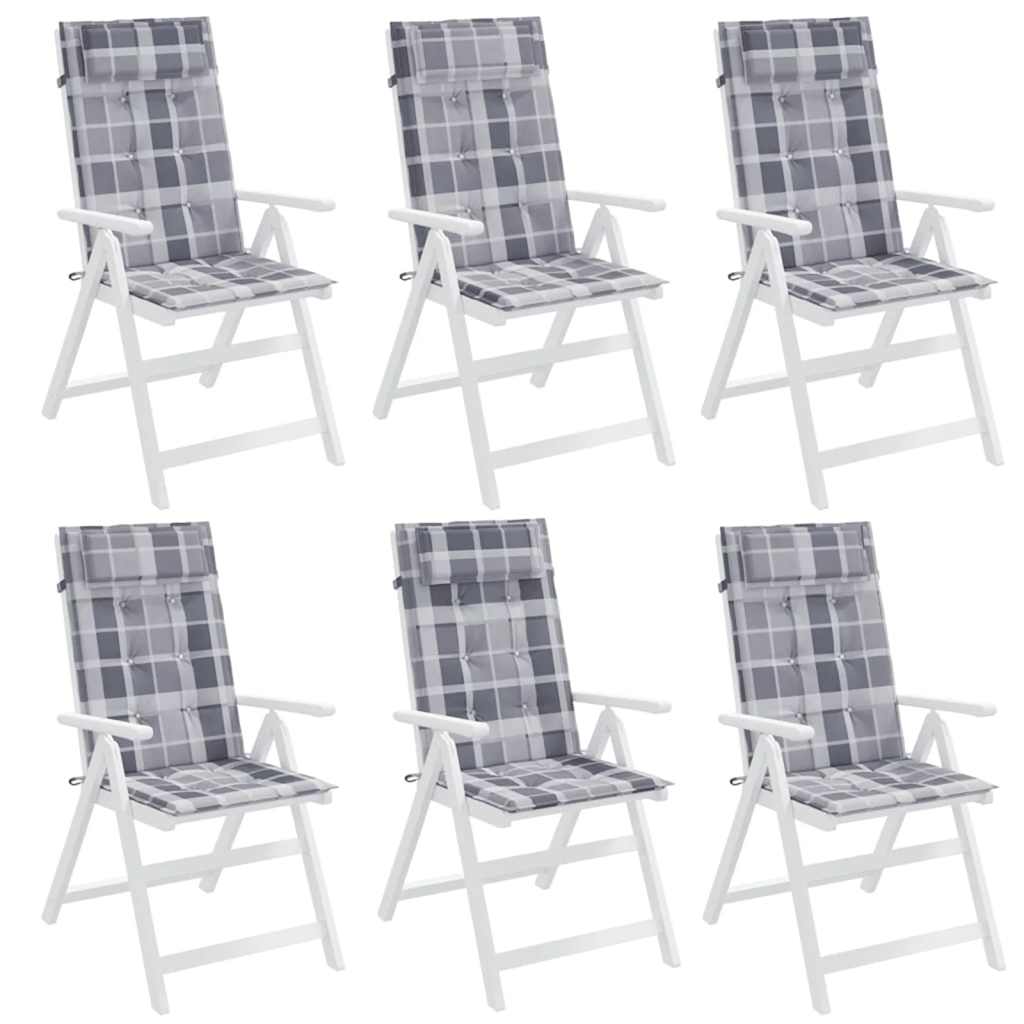 vidaXL Μαξιλάρια Καρέκλας με Ψηλή Πλάτη 6 τεμ Γκρι Καρό Ύφασμα Oxford