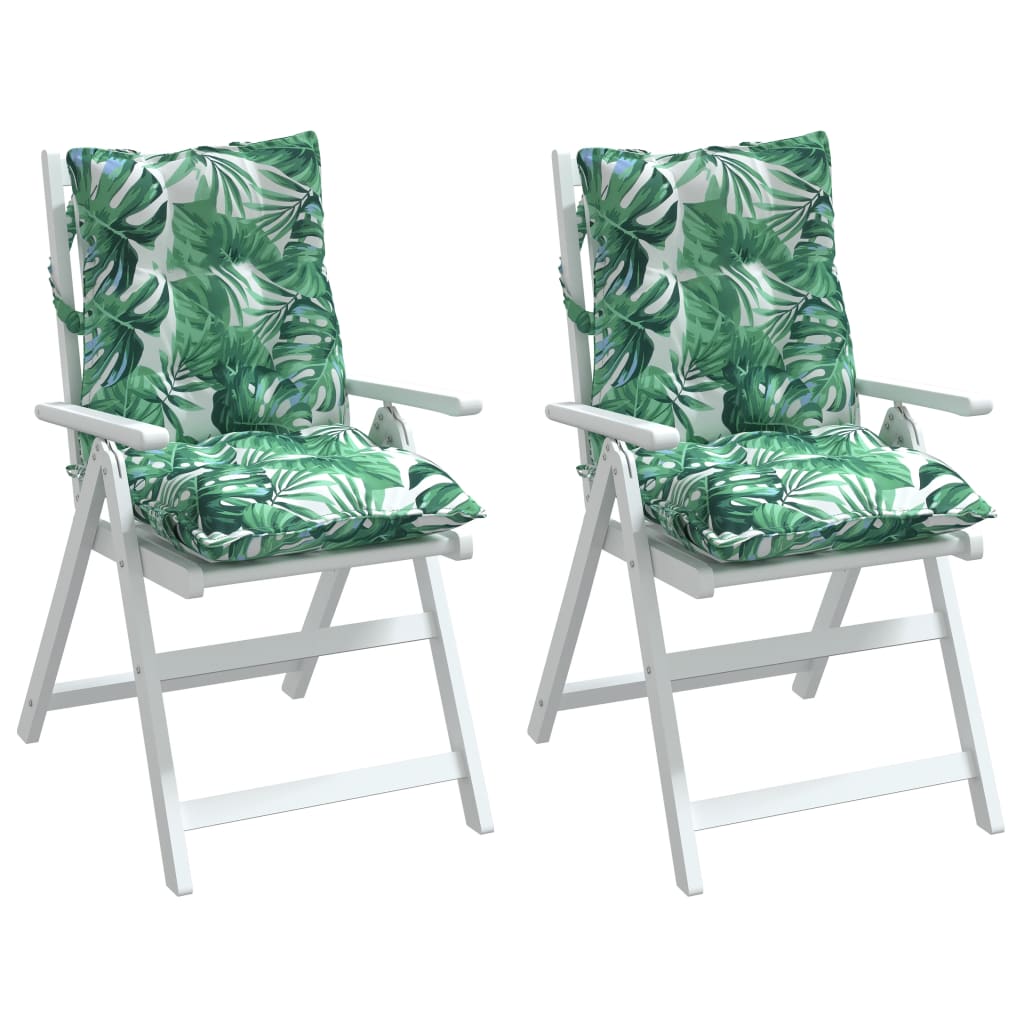 vidaXL Μαξιλάρια Καρέκλας Χαμηλή Πλάτη 2 τεμ. Σχέδιο με Φύλλα Ύφασμα