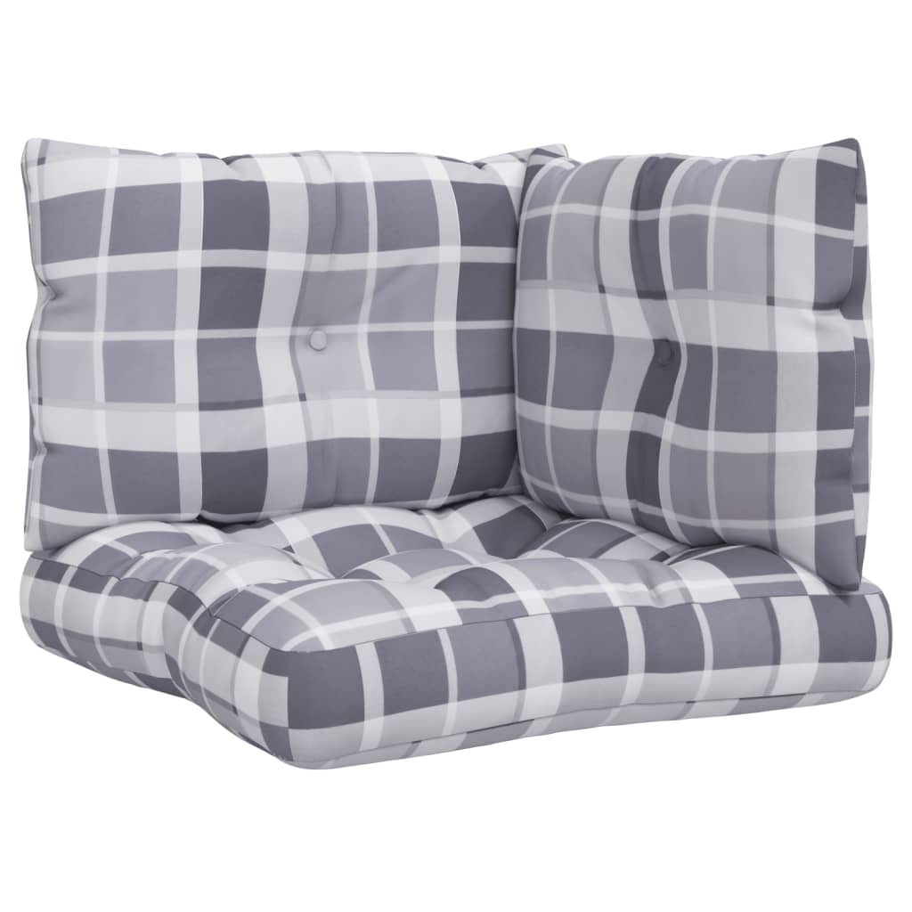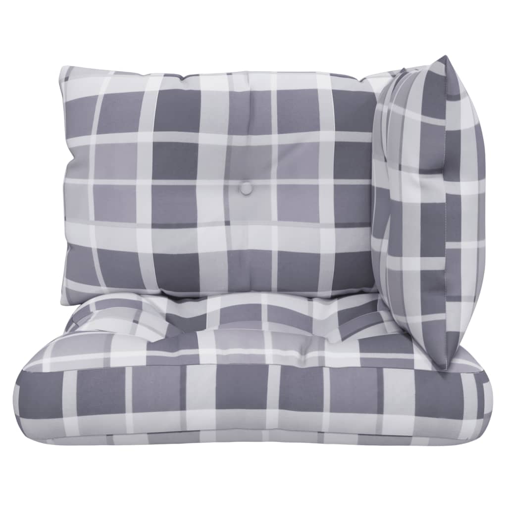 vidaXL Μαξιλάρια Παλέτας 3 τεμ. Γκρι Καρό Υφασμάτινα