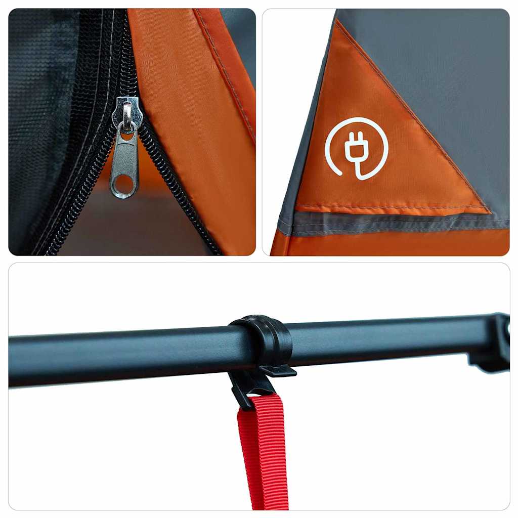 - Αναπνεύσιμος Σχεδιασμός: Με λεπτομέρειες από δίχτυ, επιτρέπει στον αέρα να κυκλοφορεί ωραία, κρατώντας τη σκηνή δροσερή ακόμα και όταν έχει ήλιο. Αυτό όχι μόνο ενισχύει την άνεση σας, αλλά και βοηθά στη διαχείριση της υγρασίας, κρατώντας τα πράγματα ωραία μέσα.