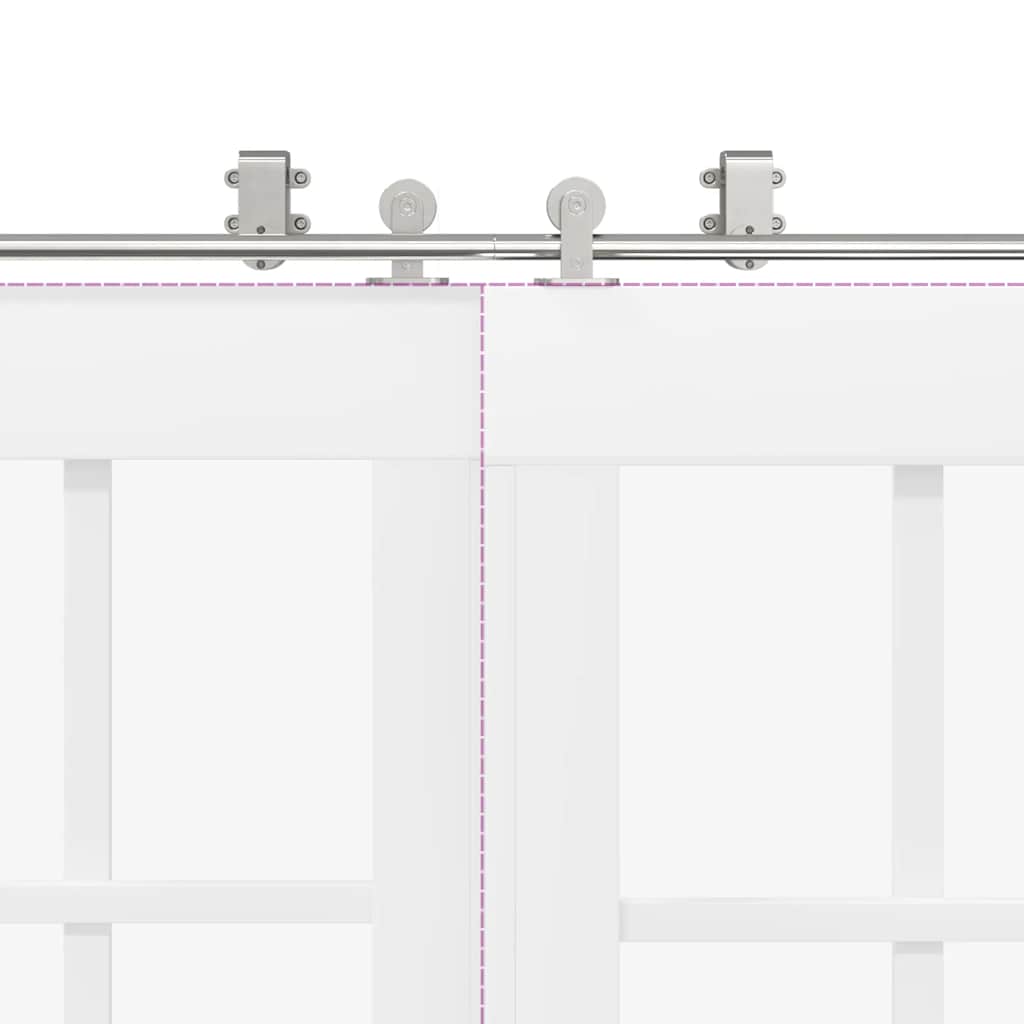 - Ιδανικό για διπλές πόρτες αχυρώνα: Όταν ο χώρος στον τοίχο είναι περιορισμένος, το κιτ βραχίονα παράκαμψης πόρτας αχυρώνα επιτρέπει σε δύο πόρτες αχυρώνα να γλιστρούν ανεξάρτητα σε δύο τροχιές χωρίς να απαιτείται επιπλέον διάκενο.