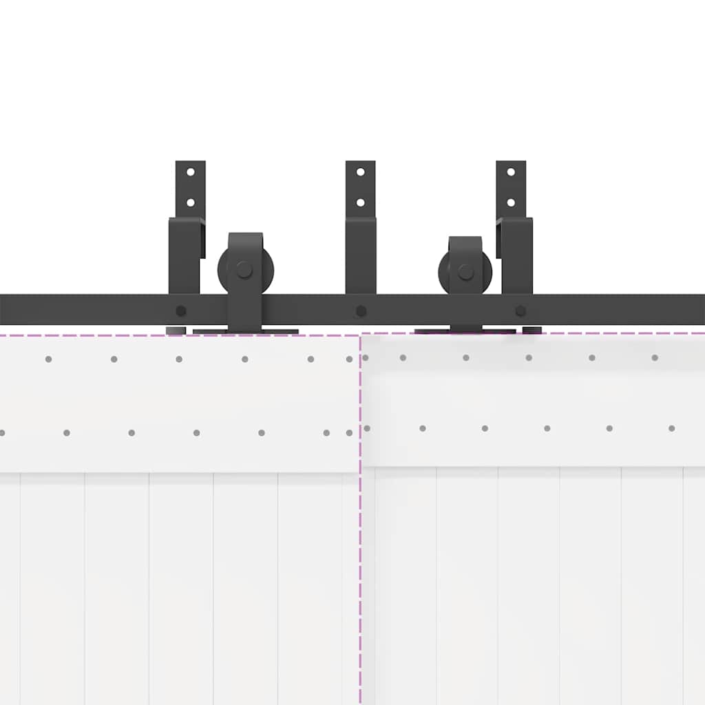 - Ιδανικό για διπλές πόρτες αχυρώνα: Όταν ο χώρος στον τοίχο είναι περιορισμένος, το κιτ βραχίονα παράκαμψης πόρτας αχυρώνα επιτρέπει σε δύο πόρτες αχυρώνα να γλιστρούν ανεξάρτητα σε δύο τροχιές χωρίς να απαιτείται επιπλέον διάκενο.