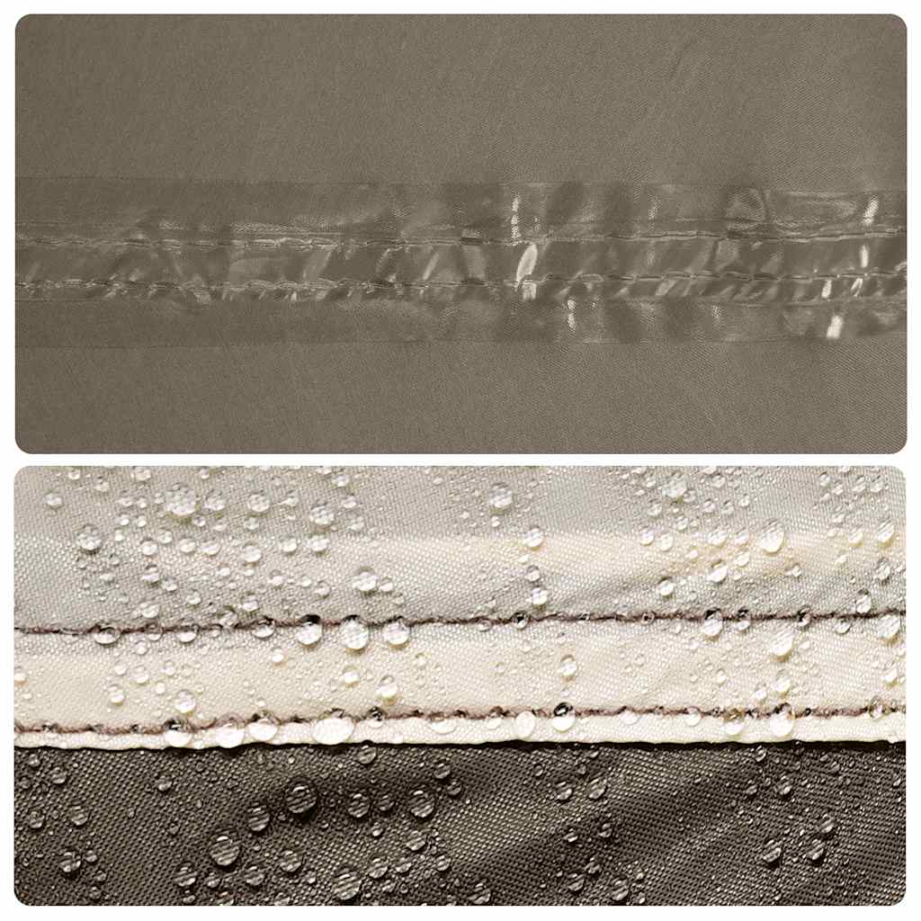 - Ανθεκτικό υλικό ταφτά: Αυτός ο μουσαμάς είναι κατασκευασμένος από ύφασμα ταφτά με επίστρωση PU, είναι αδιάβροχο και ανθεκτικό στον αέρα. Επίσης, οι κολλημένες ραφές αποτρέπουν αποτελεσματικά τη διείσδυση του νερού της βροχής, συμβάλλοντας στη διατήρηση ενός στεγνού και άνετου εσωτερικού χώρου.