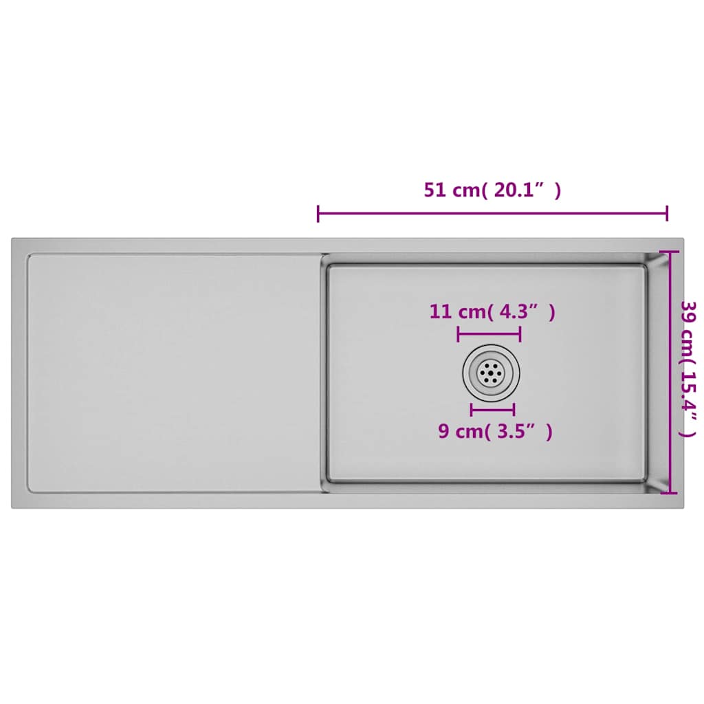 vidaXL Νεροχύτης Κουζίνας Χειροποίητος από Ανοξείδωτο Ατσάλι