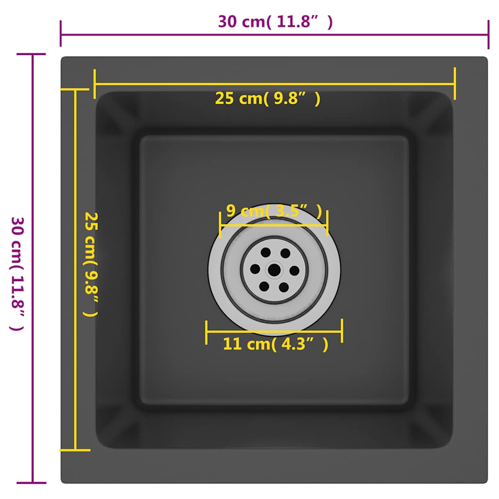 vidaXL Νεροχύτης Κουζίνας Χειροποίητος Μαύρος από Ανοξείδωτο Ατσάλι