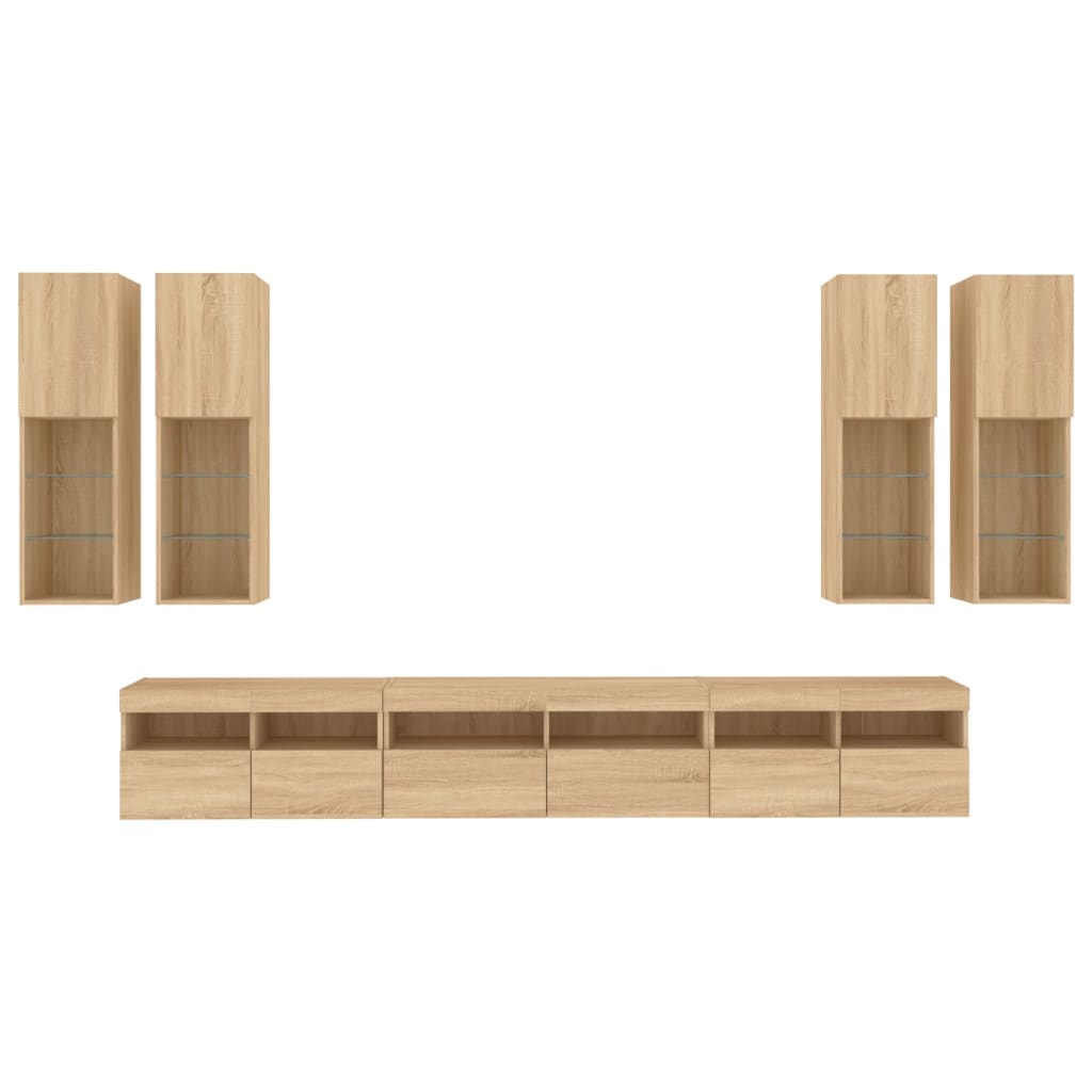 vidaXL Ντουλάπια Τηλεόρασης Τοίχου Σετ 7 τεμ. με Φώτα LED Sonoma Δρυς