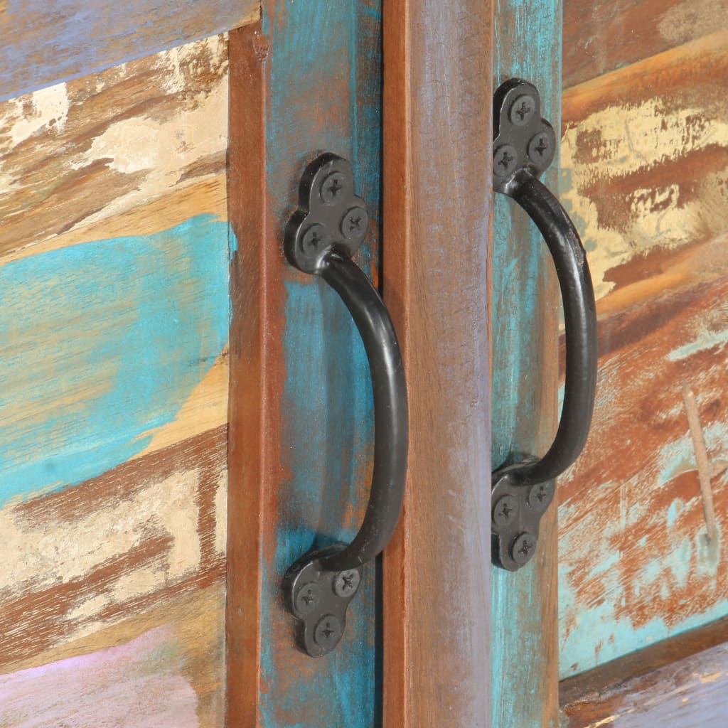 Αυτό το ντουλάπι αποθήκευσης είναι κατασκευασμένο από μασίφ ανακυκλωμένο ξύλο, το οποίο σημαίνει πως κάθε έπιπλο είναι μοναδικό και ελαφρώς διαφορετικό από τα υπόλοιπα. Τα έπιπλα που είναι κατασκευασμένα από ανακυκλωμένο ξύλο διαθέτουν χαρακτηριστικά από διαφορετικά ξύλα όπως teak, παλίσανδρο, μάνγκο και ακακία. Το ανακυκλωμένο ξύλο είναι συμπαγές, σταθερό, ανθεκτικό και όμορφο. Τα σημάδια φθοράς και η ορατή δομή των νερών χαρίζουν σε κάθε κομμάτι τη δική του ιστορία και μια μοναδική εμφάνιση.