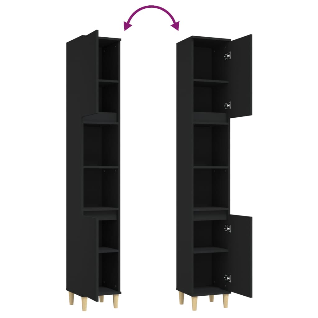 vidaXL Ντουλάπι Μπάνιου Μαύρο 30x30x190 εκ. Επεξεργασμένο Ξύλο