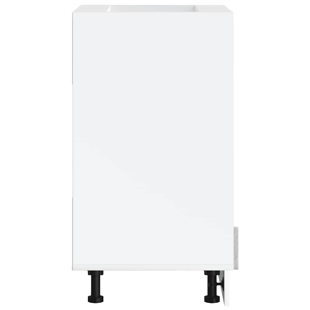 - Ρυθμιζόμενα πόδια: Τα πόδια αυτού του ντουλαπιού μπορούν να ρυθμιστούν σε ύψος ώστε να ταιριάζουν στη διαρρύθμιση της κουζίνας σας.