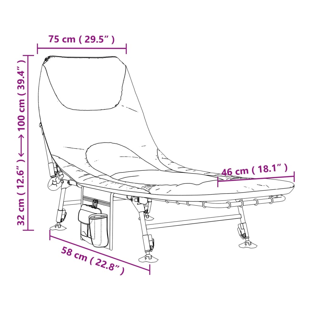 - Πρακτικός σχεδιασμός: Τα ρυθμιζόμενα πόδια της ξαπλώστρας ψαρέματος είναι εξοπλισμένα με πόδια λάσπης, εξασφαλίζοντας άνετη χρήση ακόμη και σε ανώμαλο έδαφος και αποτρέποντας τη βύθισή τους σε μαλακό έδαφος. Επιπλέον, διαθέτει μια βολική πλαϊνή τσάντα αποθήκευσης, που σας διευκολύνει να αποθηκεύετε και να μεταφέρετε μικρά αντικείμενα.