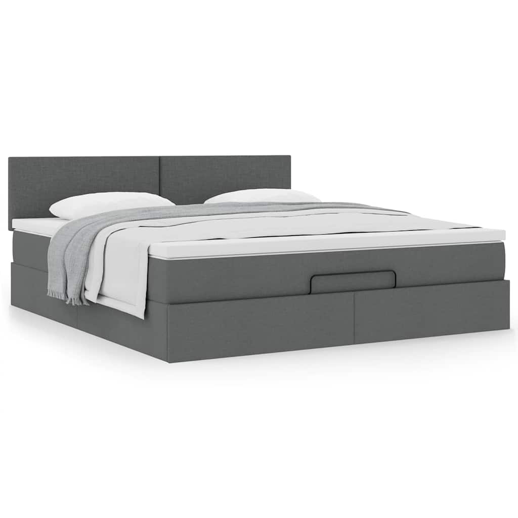 vidaXL Οθωμανικό κρεβάτι με στρώμα σκούρο γκρι 160x200cm ύφασμα