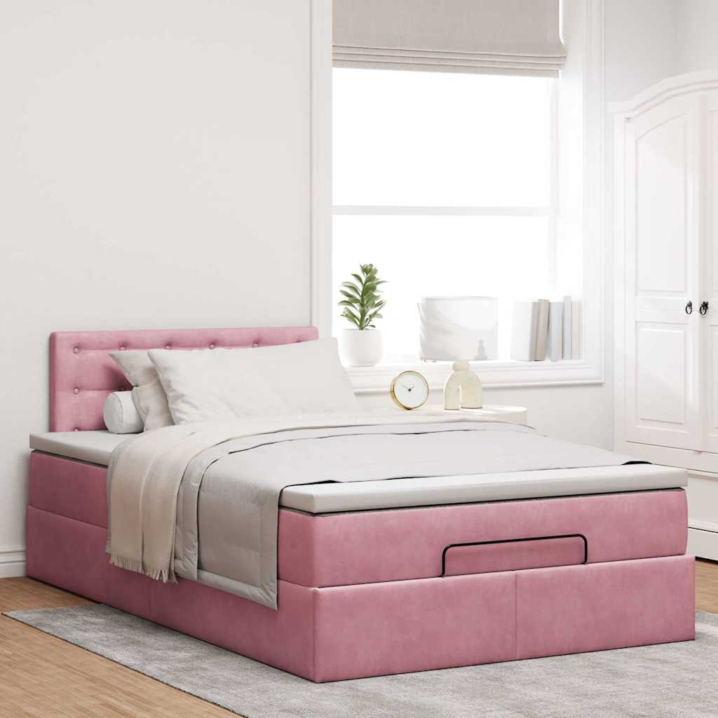 vidaXL Οθωμανικό κρεβάτι με στρώμα & LEDs Ροζ 120x200cm Velvet
