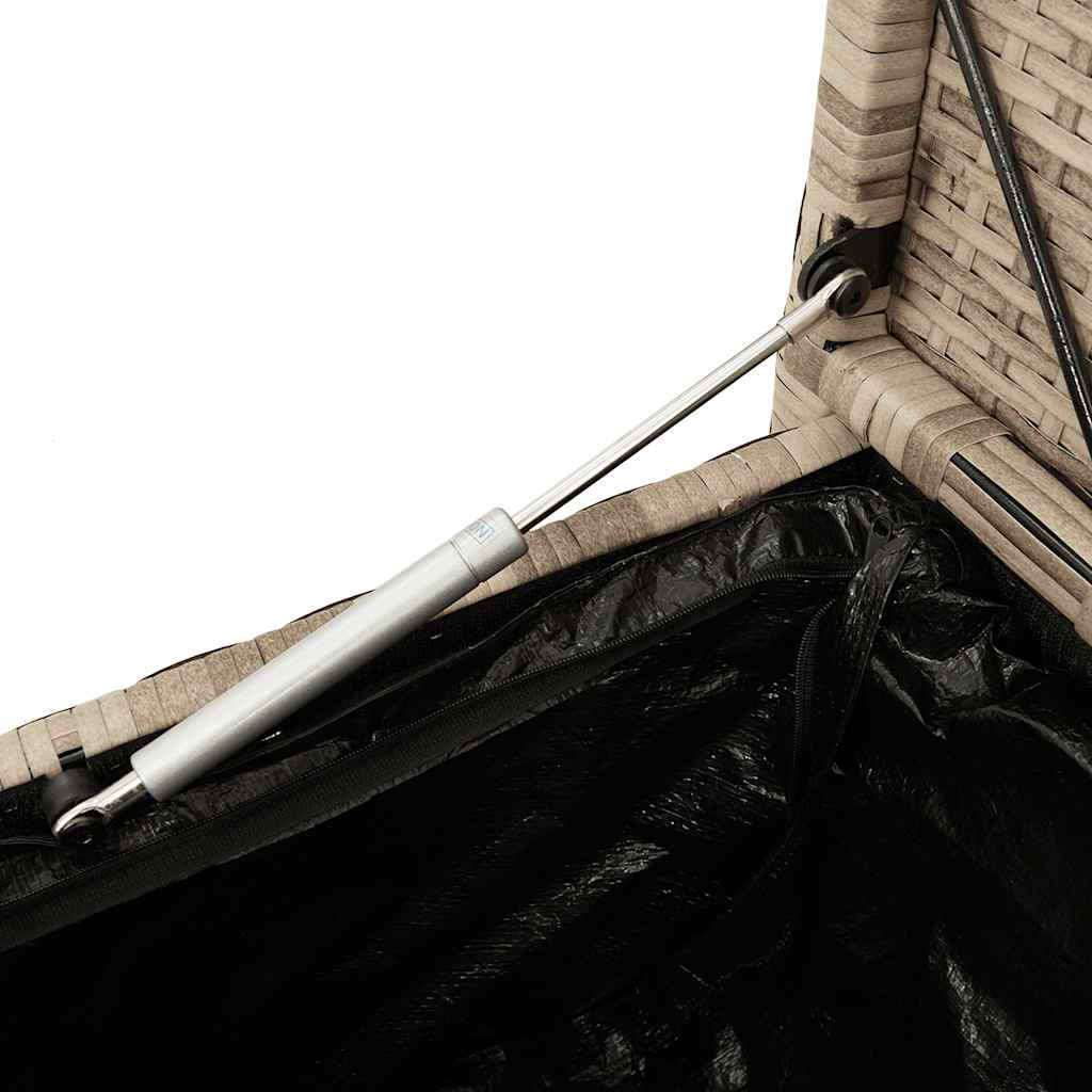 vidaXL Πάγκος αποθήκευσης κήπου με μαξιλάρι Μπεζ Poly Rattan