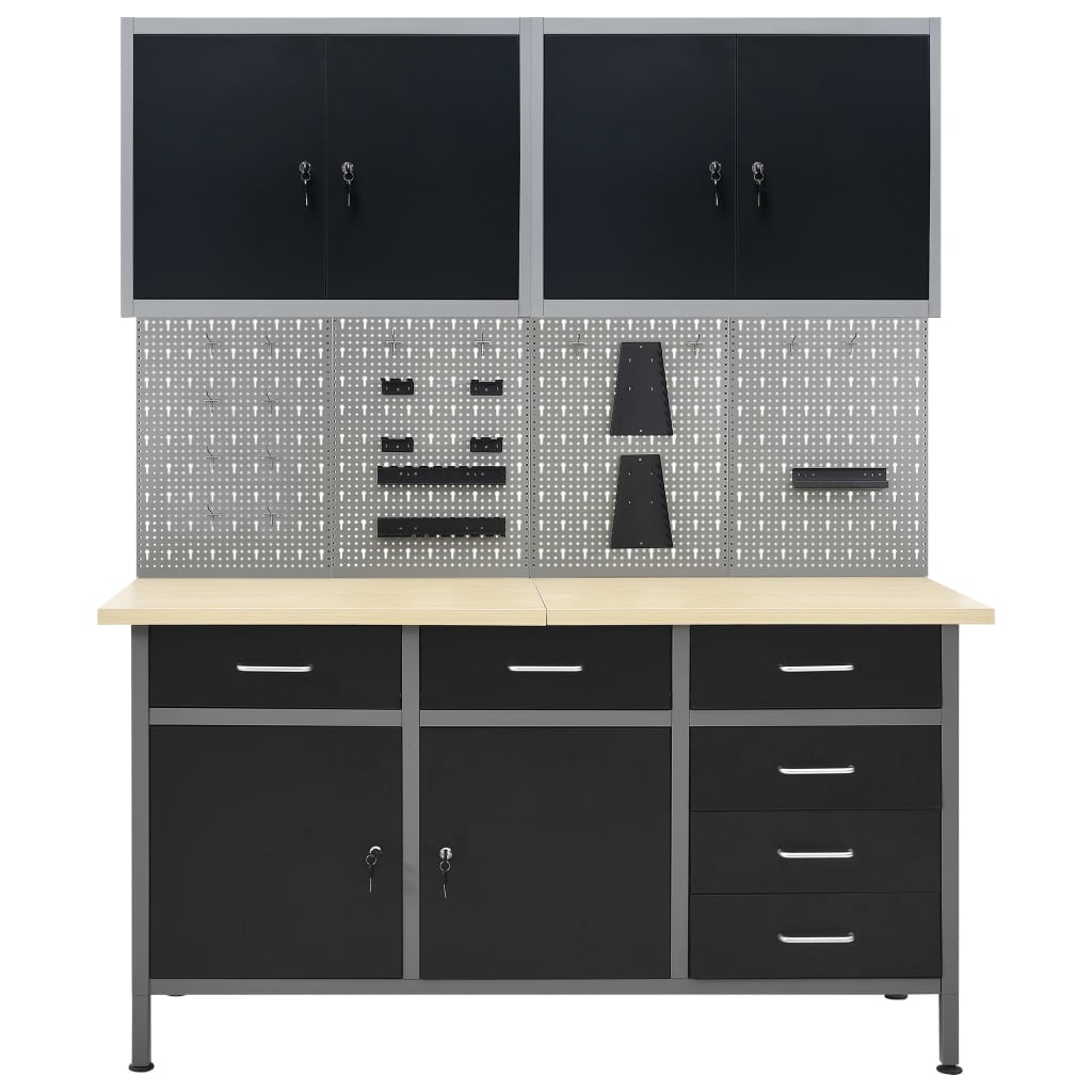 vidaXL Πάγκος Εργασίας με Τέσσερα Πάνελ Τοίχου και Δύο Ντουλάπια