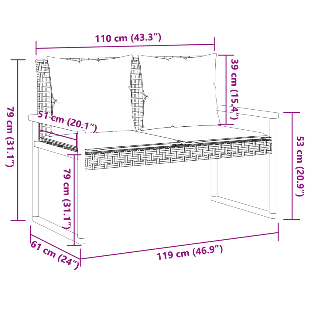 vidaXL Πάγκος Κήπου Μαύρος από Συνθ. Ρατάν/Ξύλο Ακακίας με Μαξιλάρι