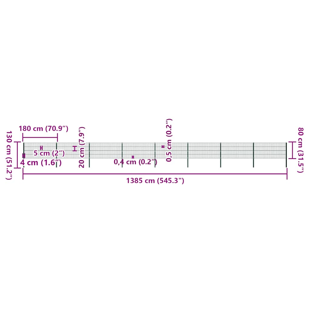 vidaXL Πάνελ Περίφραξης με Στύλους Σιδερένιο Πράσινο 1385 x 80 εκ.
