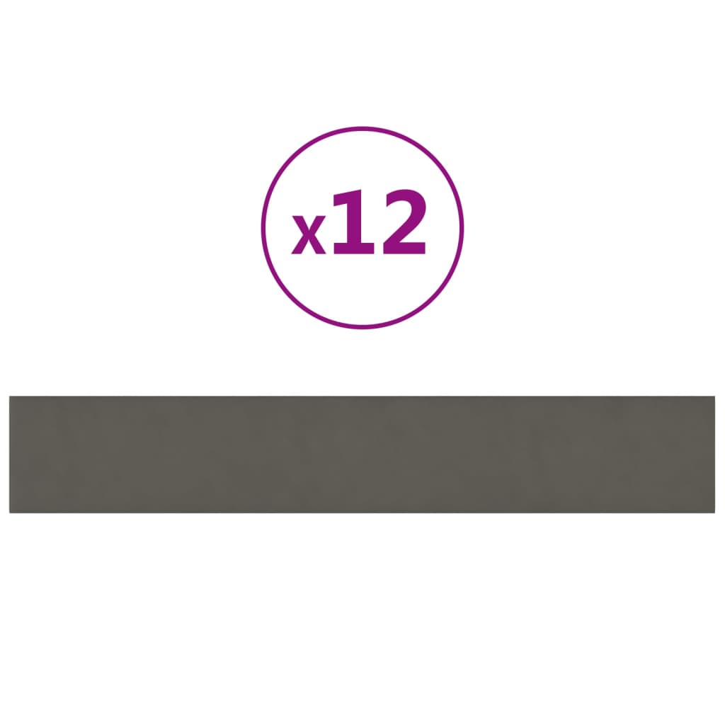 vidaXL Πάνελ Τοίχου 12 τεμ. Σκούρο γκρι 90 x 15 εκ. 1,62 μ² Βελούδινα